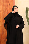 عباية أنيقة باللون الأسود الكلاسيكي تجمع بين البساطة والفخامة الهادئة، بتصميم واسع ومريح يمنحكِ حرية حركة وإطلالة راقية تناسب اليومي والمناسبات.