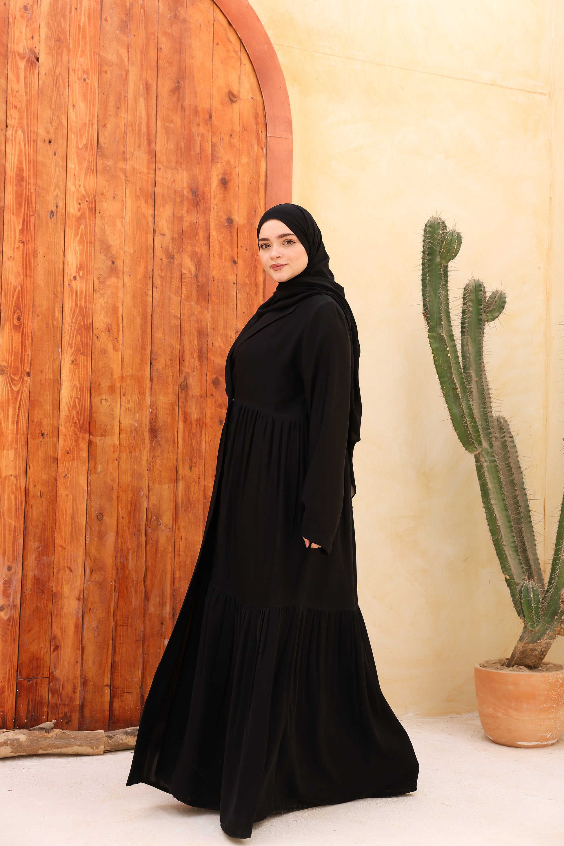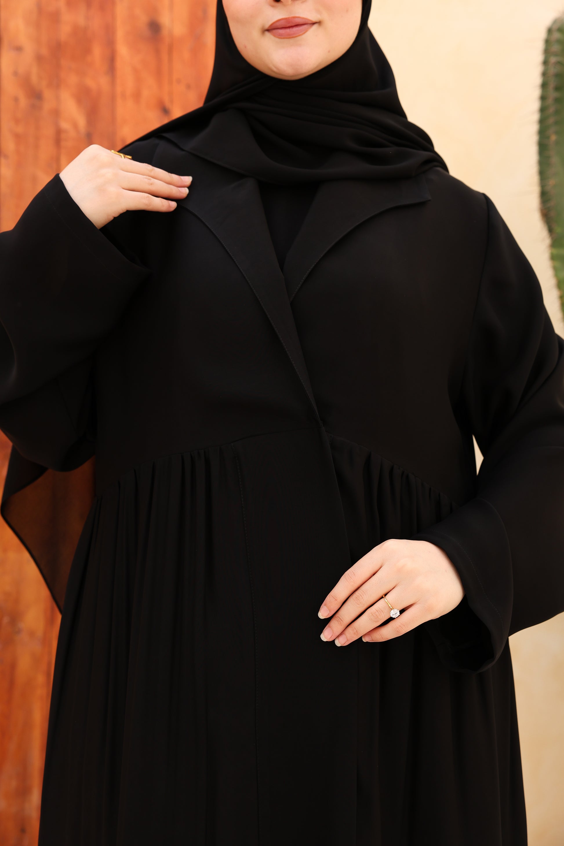 • كسرات (ثنيات) ناعمة في المنتصف وأسفل العباية لثبات وشكل جذاب أثناء الحركة.