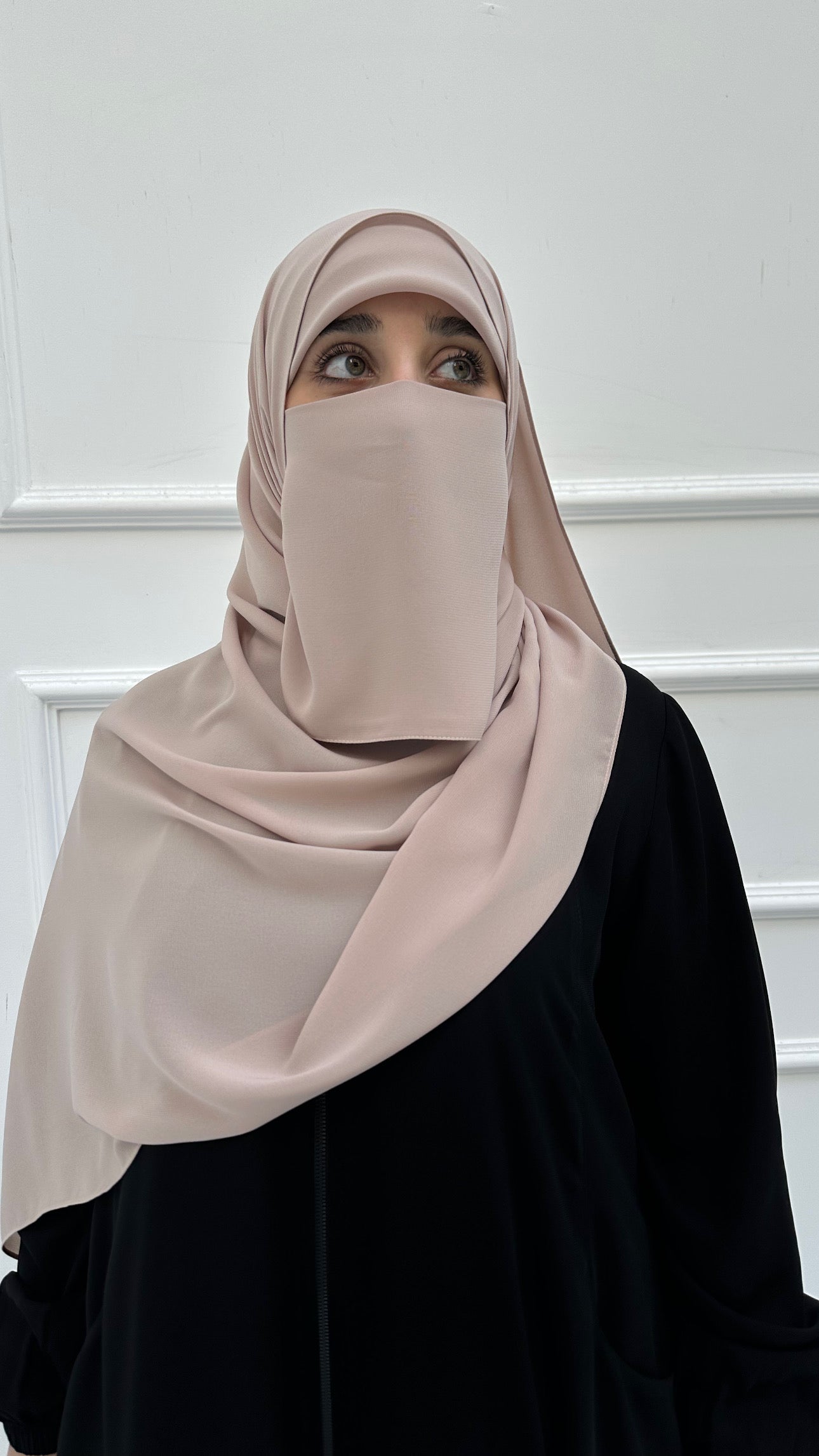 لثمة مصنوعة من الشيفون الكوري بتصميم خفيف وناعم، مناسبة للمنتقبات للاستخدام اليومي والخروج. خامتها انسيابية ومريحة وتساعد على ثبات أفضل أثناء الحركة مع الحفاظ على شكل مرتب ومتناسق مع النقاب.