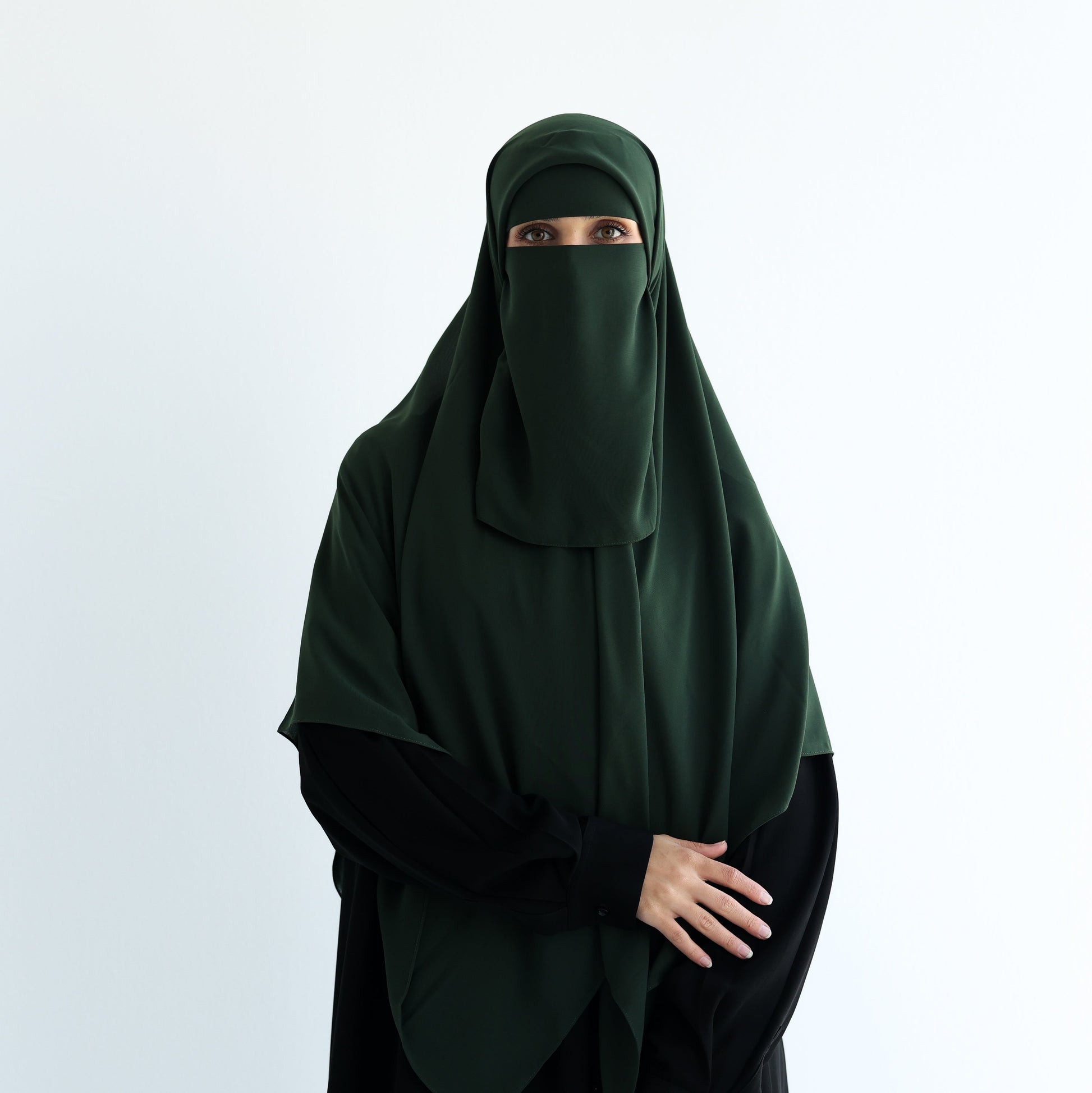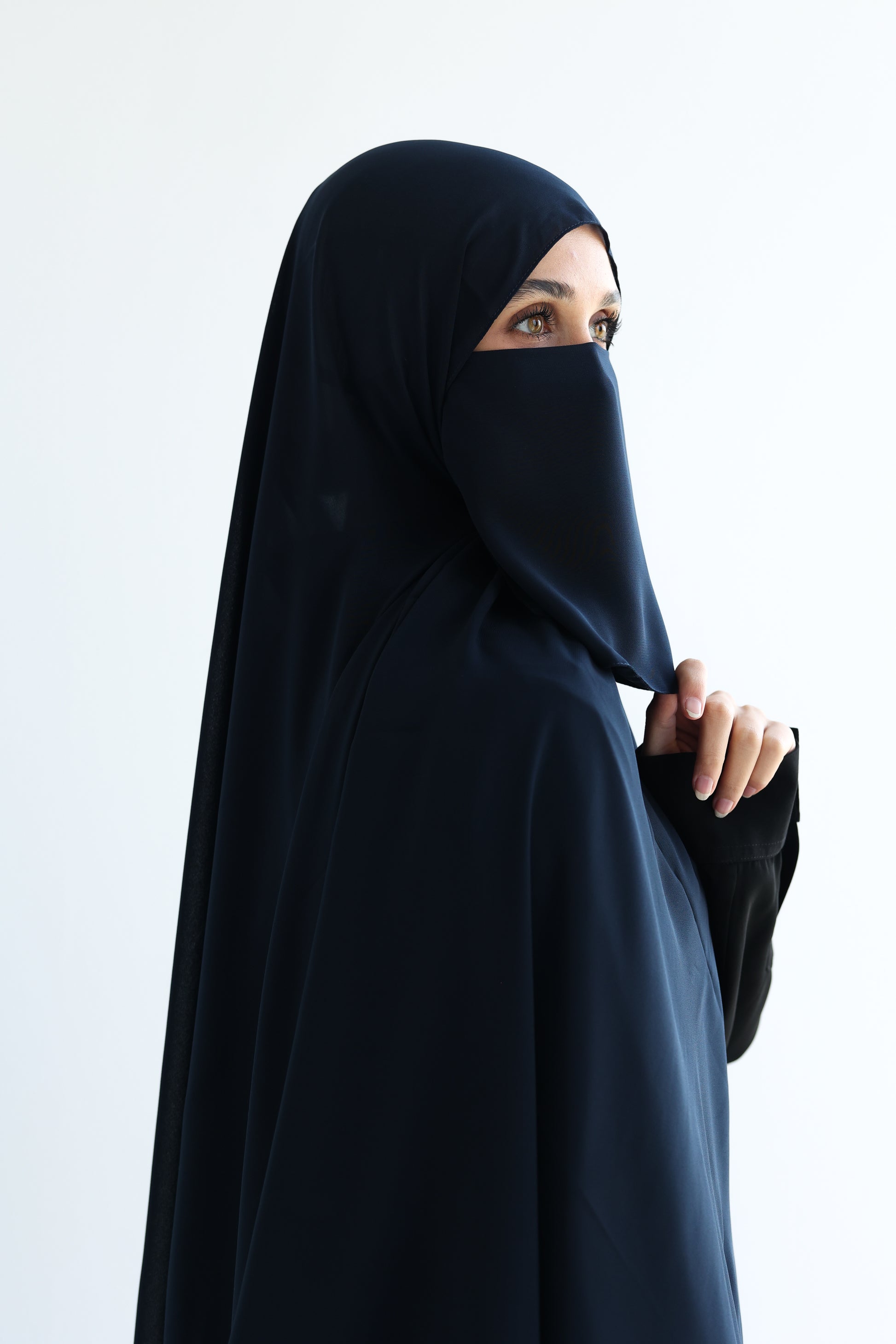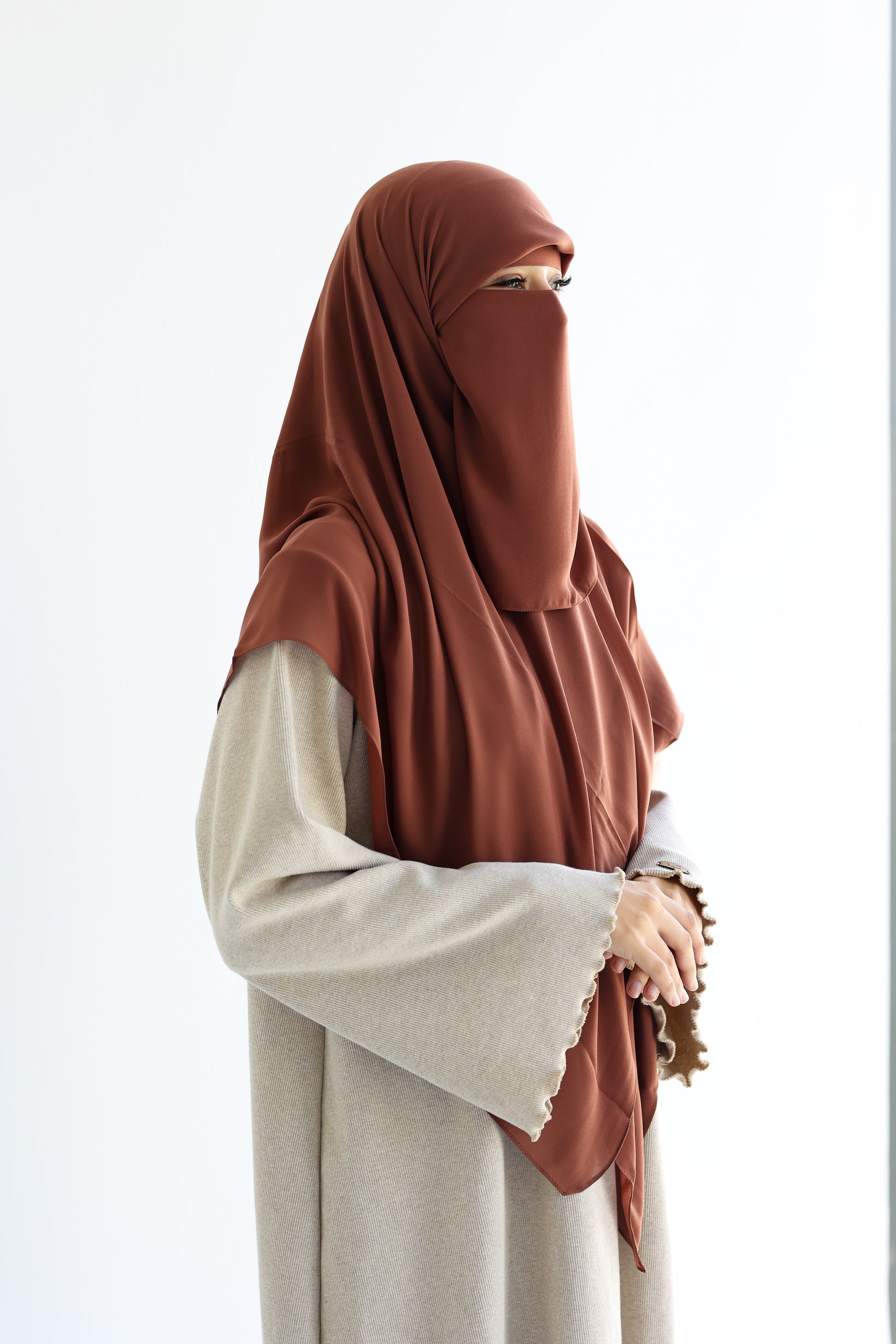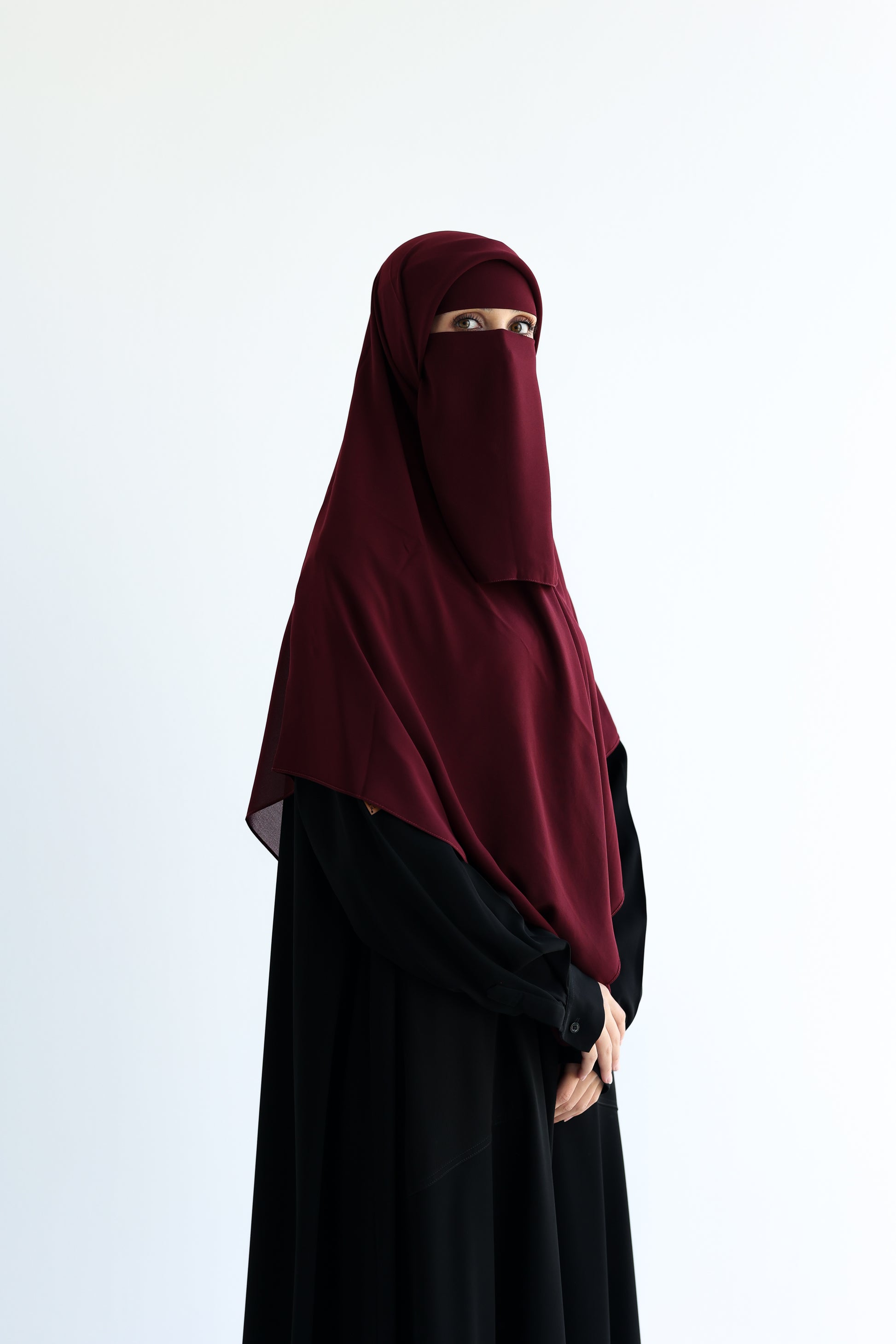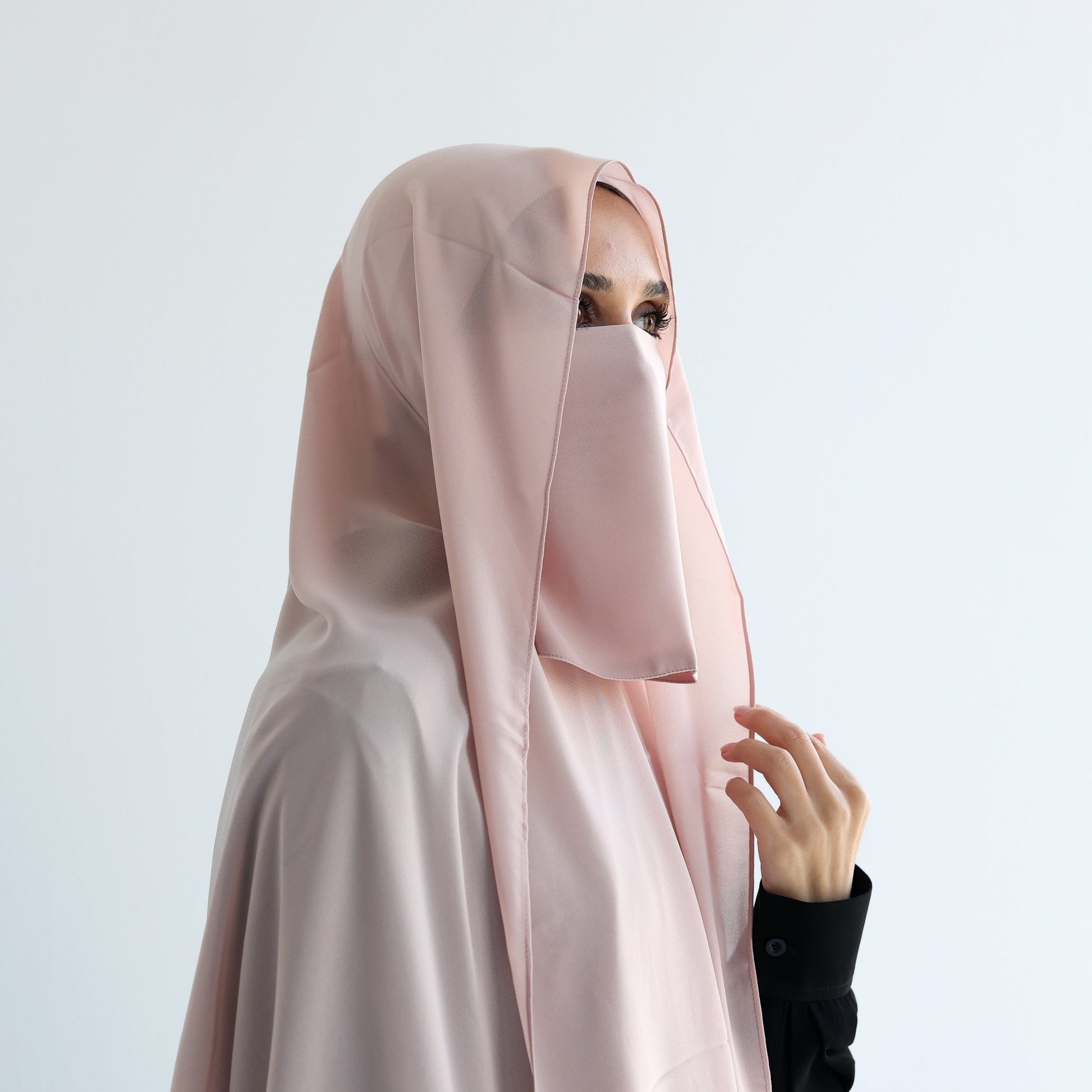 اختيار المقاس حسب التغطية اللي تفضّليها (أقصر/أطول) وطريقة لبسك للنقاب.