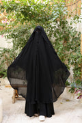 خمار كويتي ساتر بتصميم يجمع بين البساطة والفخامة، مصنوع من قماش الشيفون الكوري الناعم ليمنحك إحساسًا بالراحة والنعومة طوال اليوم.