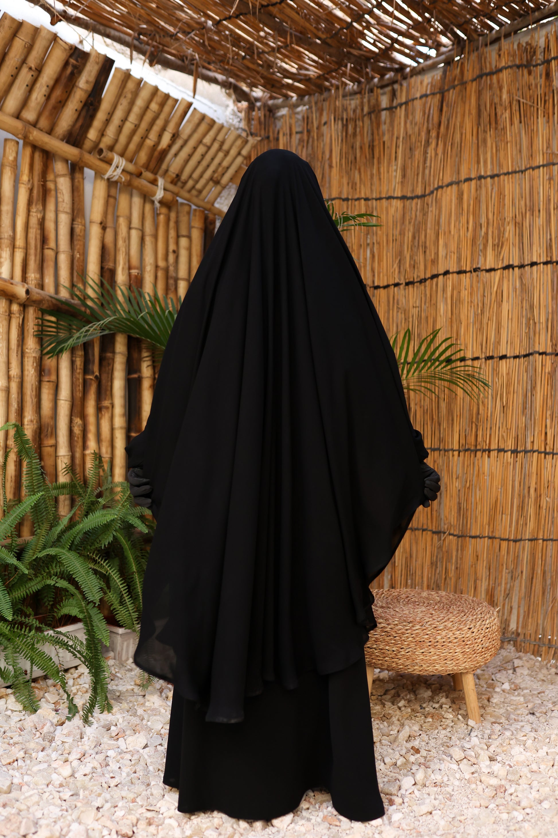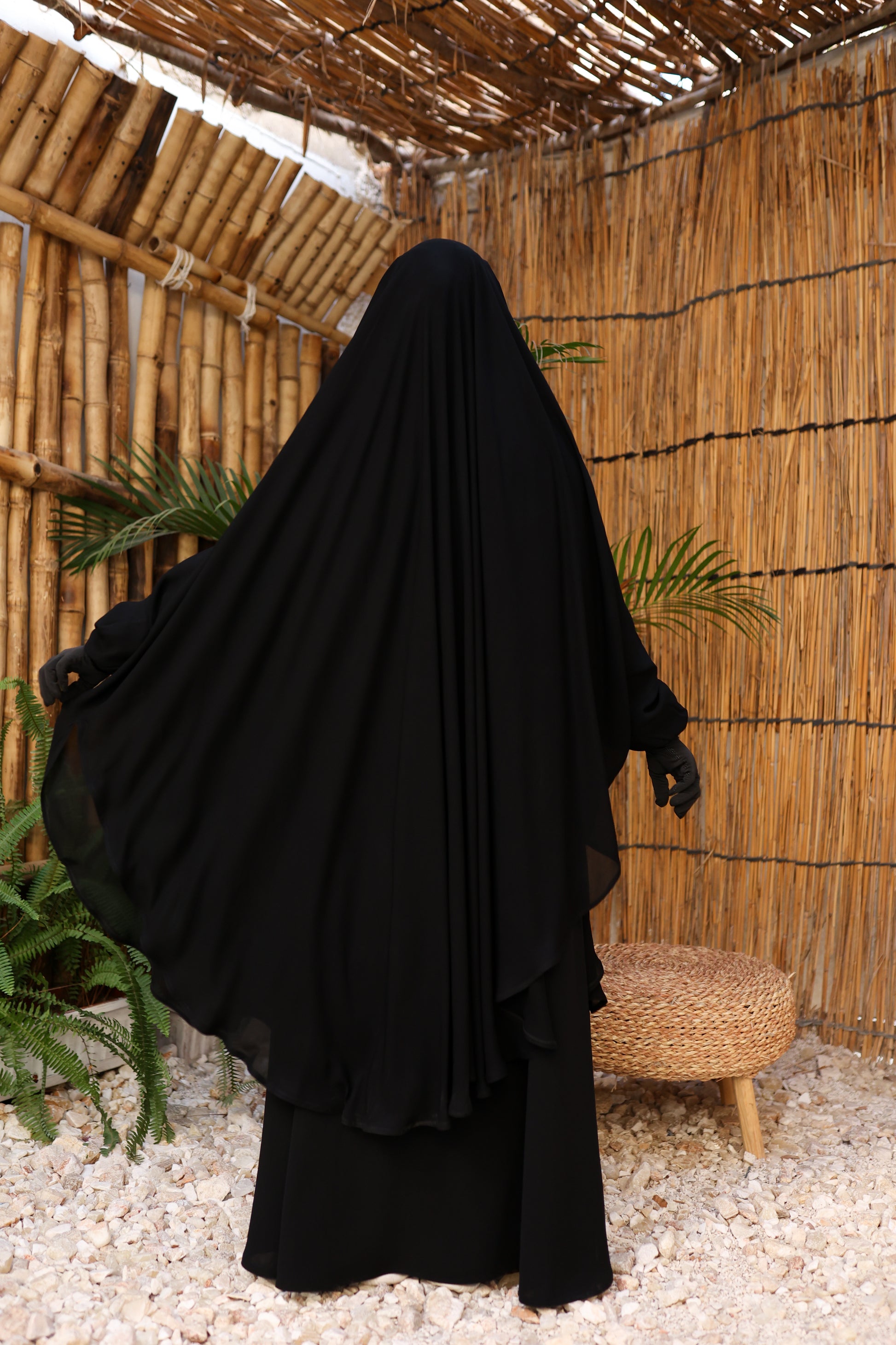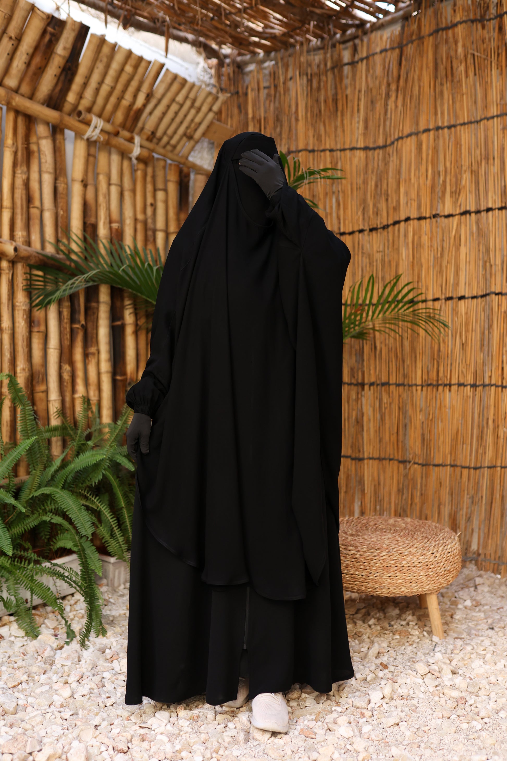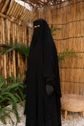 الوَشاح مغلق تمامًا لتوفير أعلى درجات الستر، ومزوّد بتفاصيل عملية: