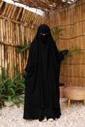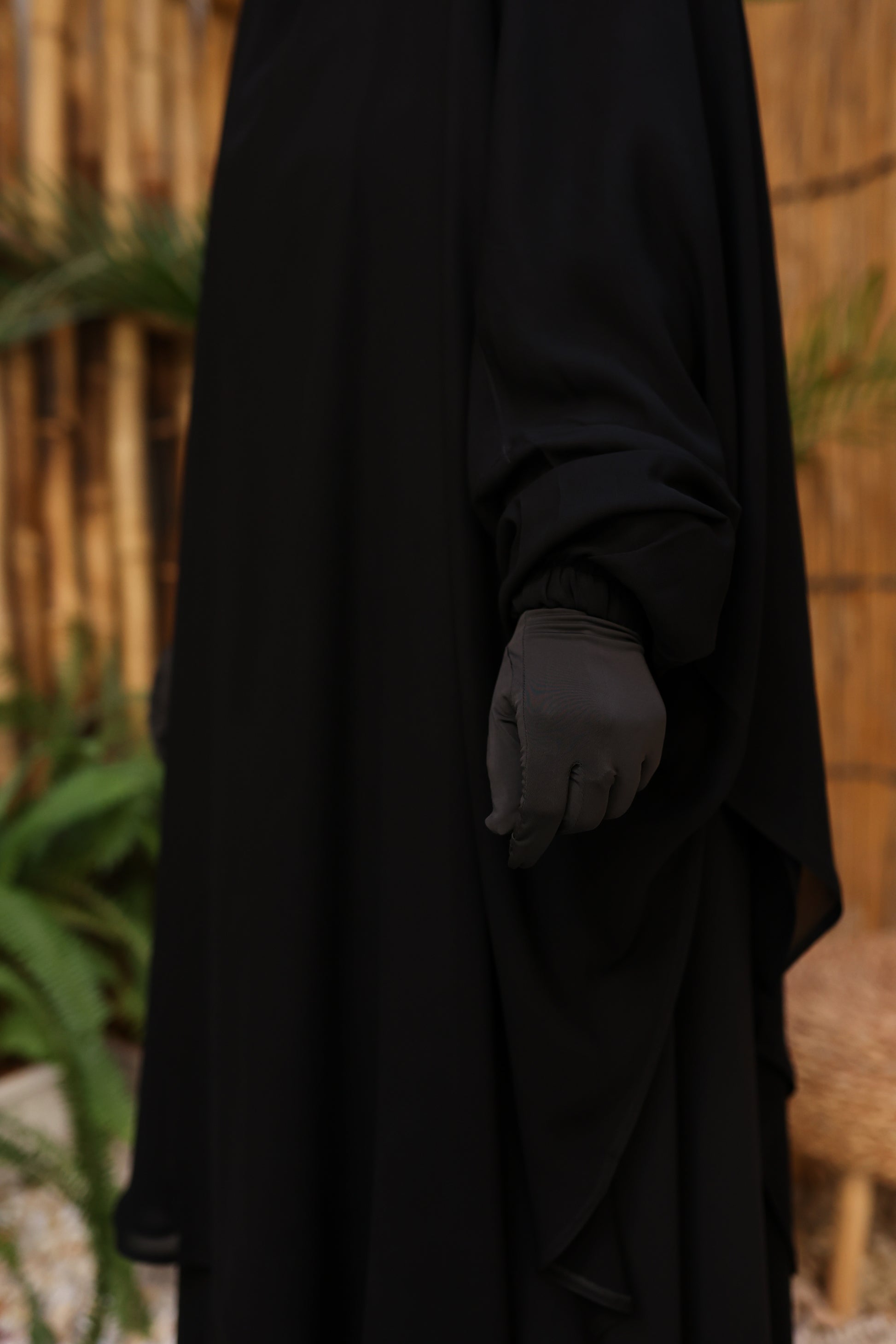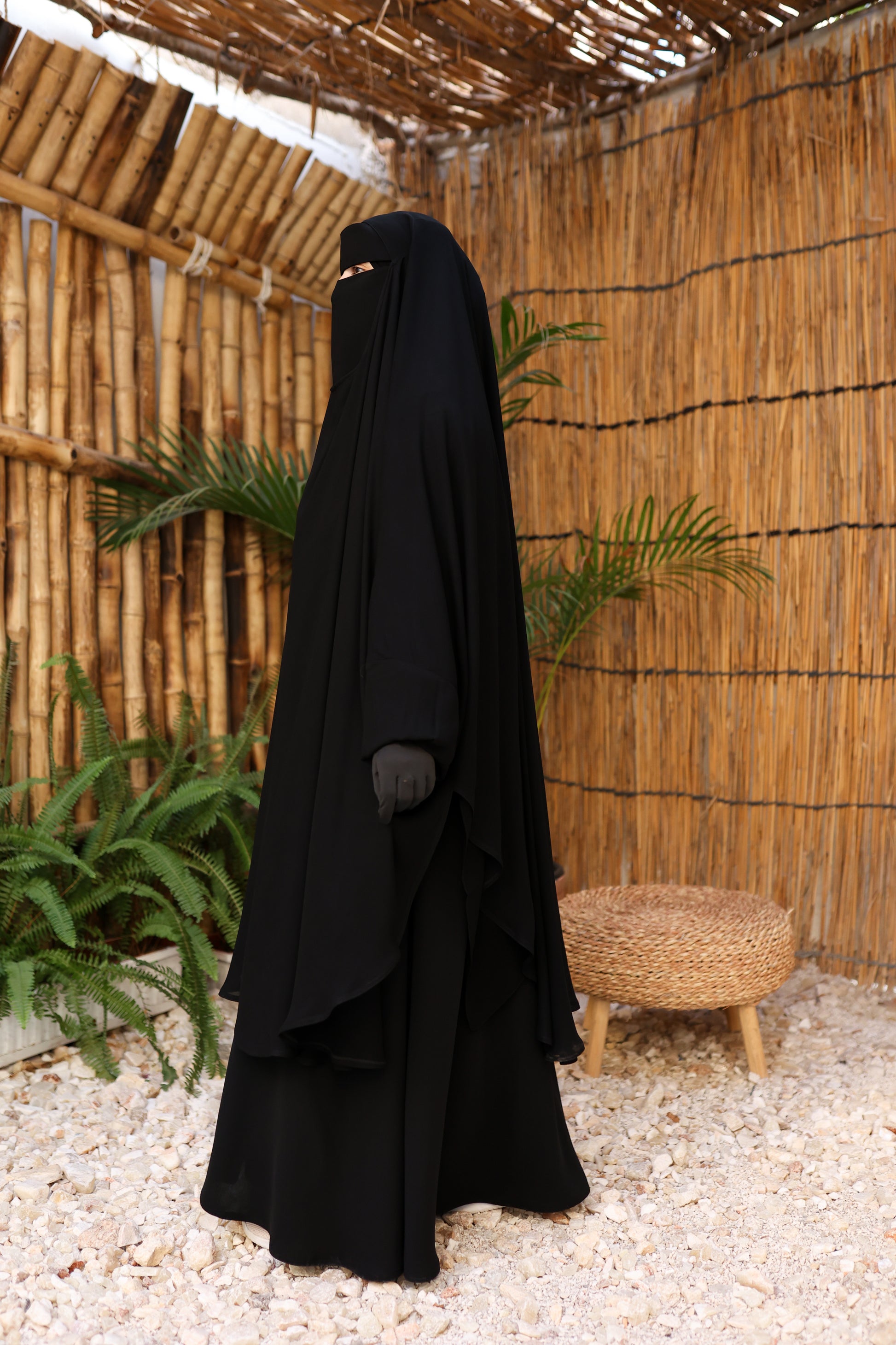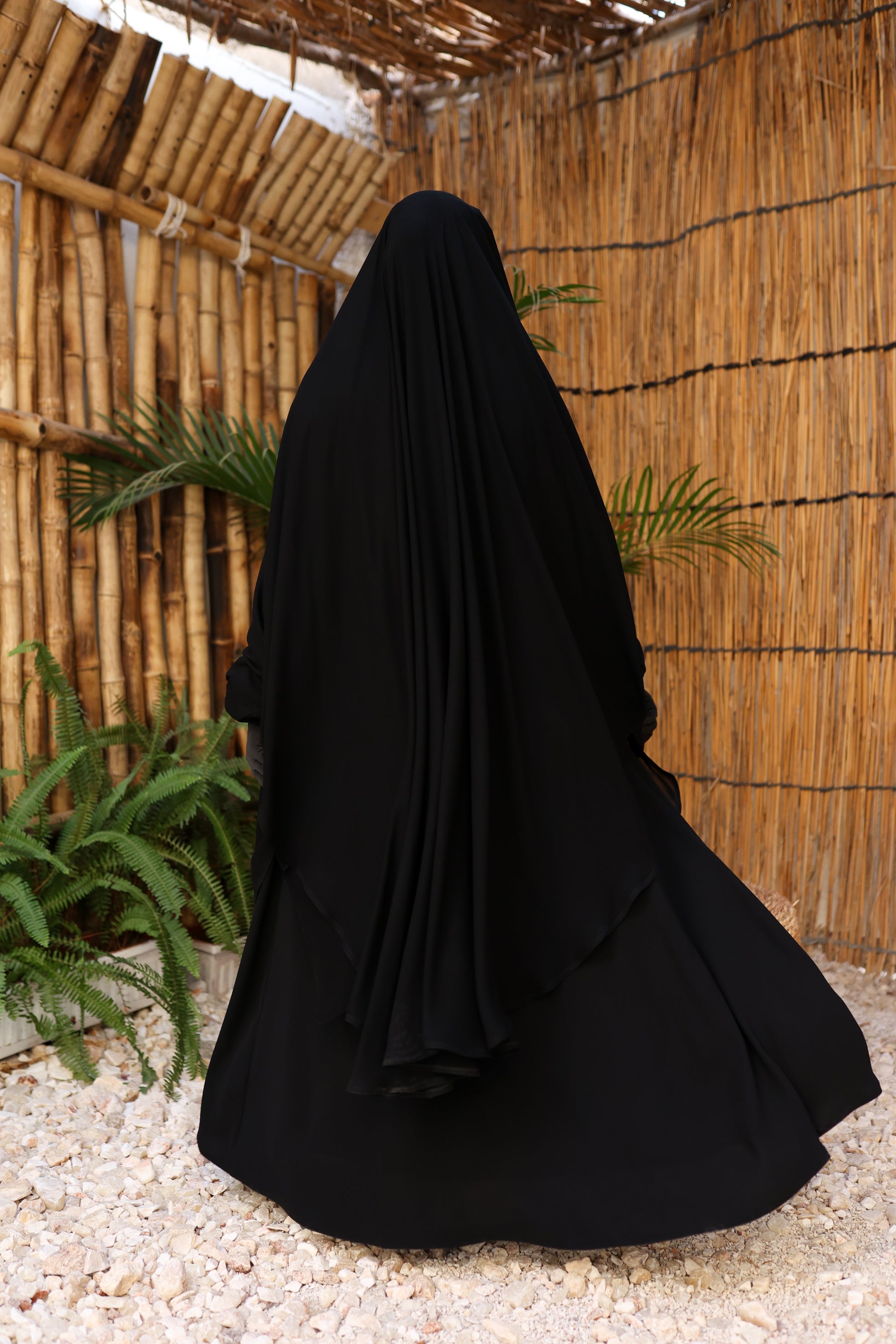 الوَشاح مغلق تمامًا لتوفير أعلى درجات الستر، ومزوّد بتفاصيل عملية: